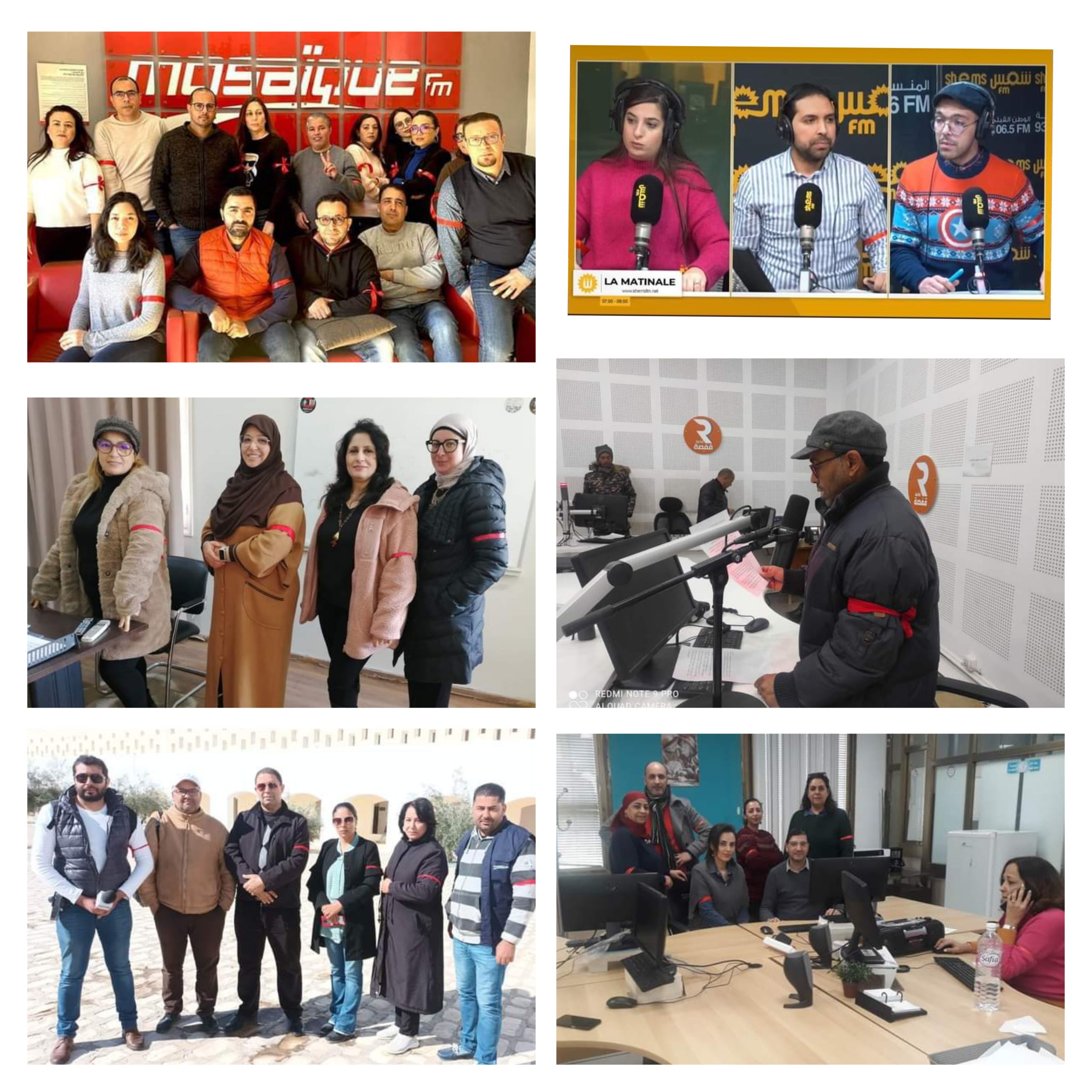 Des journalistes travaillant dans différentes institutions médiatiques dans diverses régions (Mosaïque FM, Shems FM, la TAP, la Radio de Gafsa, des groupes de journalistes à Sfax et au Kairouan…)  ont porté aujourd’hui, le 15 février 2023, le brassard rouge, et ce, en réponse à l’appel lancé par le Syndicat National des Journalistes Tunisiens dans le cadre des dispositions relatives à la journée de colère journalistique prévue se tenir ce jeudi, le 16 février courant, à la place de la Kasbah à partir de 10h30 du matin.