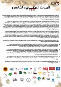 Les signataires ont appelé, par la même occasion, les autorités à divulguer les résultats des enquêtes lancées autour des soupçons de corruption au sein de l’usine d’ammonitrate de la région et la disparition « d’énormes quantités du nitrate d’ammonium qui dépassant les 2000 tonnes », et ont également appelé les citoyens et citoyennes, les mouvements environnementaux et les mouvements droit-de-l’hommiste à participer massivement à un rassemblement de protestation prévu se tenir devant le siège du ministère de l’Industrie de l’Énergie et des Mines à Tunis à partir de 16h.