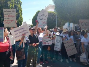 En marge des « funérailles symboliques » organisées, ce vendredi 28 avril, par la Dynamique féministe, les participantes et participants à cette mobilisation, qui a débuté à la place de la Kasbah et s’est dirigée vers le siège du ministère de la Justice, ont appelé à la concrétisation des dispositions de la loi organique n°58 relative à l’élimination de la violence à l’égard des femmes.