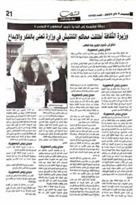 Dans une lettre ouverte publiée au Journal Echaab, la poétesse Tunisienne Oumama El Zaer a demandé au Président de la République Kais Saied d’intervenir pour protéger les personnes ayant signalé la corruption et afin de mettre fin à ce qui a été qualifié d’injustices exercées à l’encontre d’un certain nombre d’employés et de cadres au ministère des affaires culturelles, qui font, d’après ses mots, l’objet d’une série de poursuites judiciaires, limogeages et renvois aux conseils de discipline. Elle a appelé, dans le même contexte, le président Saied à ouvrir une enquête sur ce qui se passe au ministère.