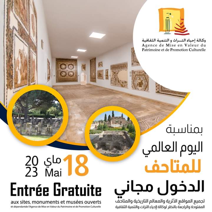 L’Agence de mise en valeur du patrimoine et de promotion culturelle (AMVPPC) a annoncé que l’accès aux sites archéologiques, monuments et musées ouverts et dépendant de l’AMVPPC sera gratuit ce jeudi 18 mai 2023, et ce, à l’occasion de la Journée internationale des musées.