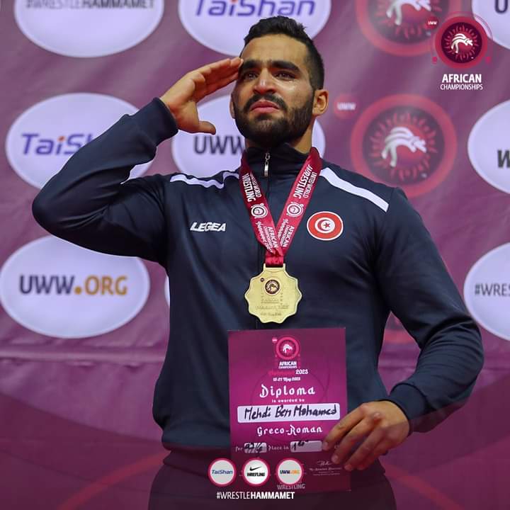 Ayant participé à la 38e édition des championnats d’Afrique de lutte, organisée à Hammamet, le jeune lutteur tunisien Mahdi Ben Mohamed a récemment remporté la médaille d’or de lutte gréco-romaine 97kg et le titre de Champion d’Afrique de la catégorie dans laquelle il exerce ce sport. Âgé de 19 ans et connu par sa discipline et son talent sportif prometteur, Mahdi Ben Mohamed a réussi à honorer son pays et à porter haut son drapeau grâce à sa persévérance et son engagement envers ses objectifs, ses rêves et ses buts.