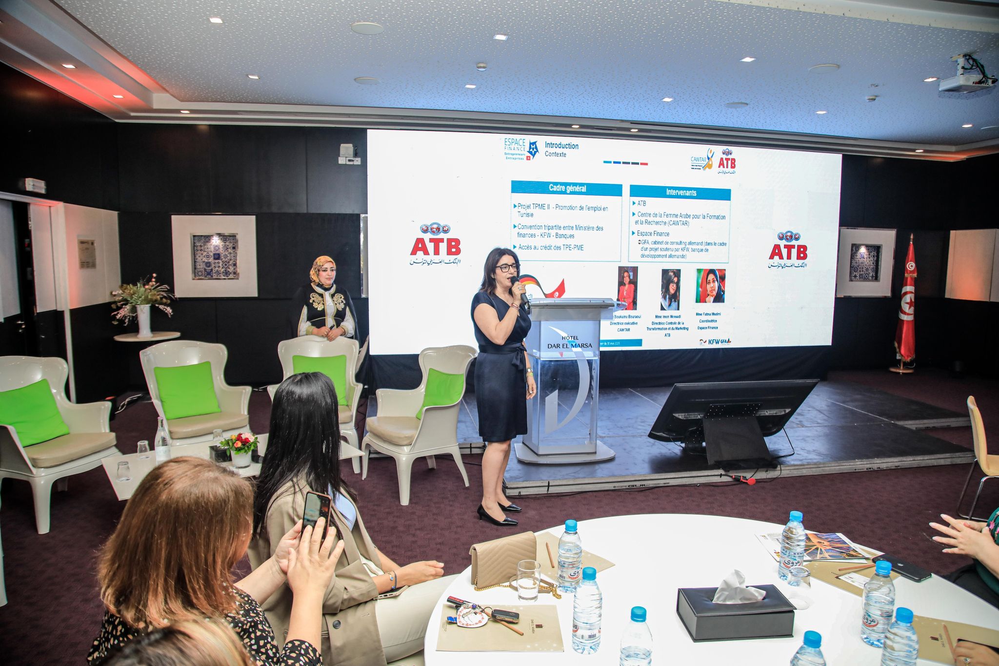 À l’issue de cet événement, l’ATB s’engage à assurer des formations aux entrepreneurs et à les faire monter en compétence dans le cadre d’un cycle Femmes Entrepreneures. En effet, le programme Espace Finance, est une initiative de coopération avec la KfW, le ministère des Finances et la Banque centrale de Tunisie afin d’appuyer les TPME pour présenter des projets bancables aux institutions financières. Les formations portent essentiellement sur la gestion de trésorerie, l’appréciation du risque et l’optimisation des contrats de financement.