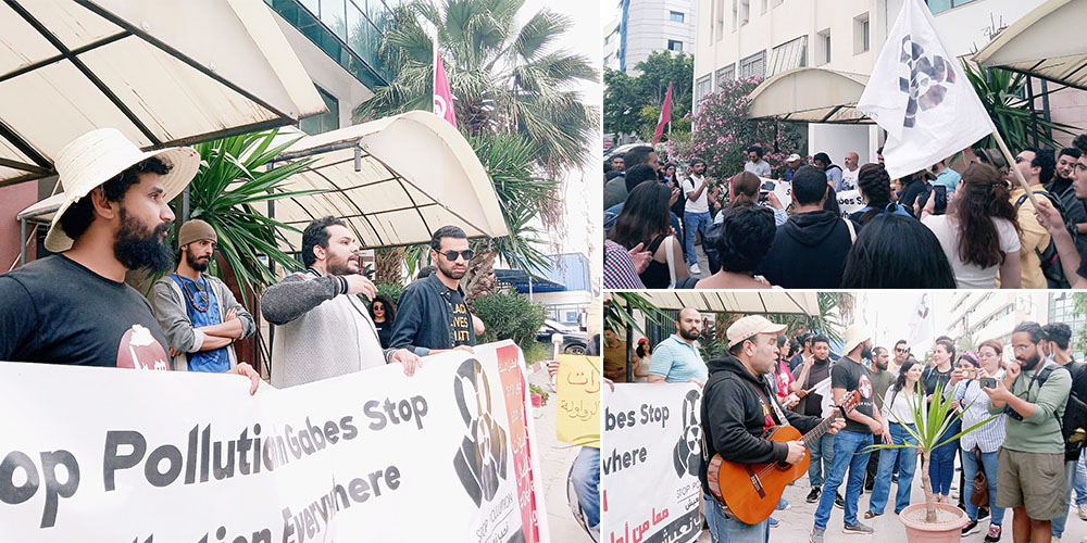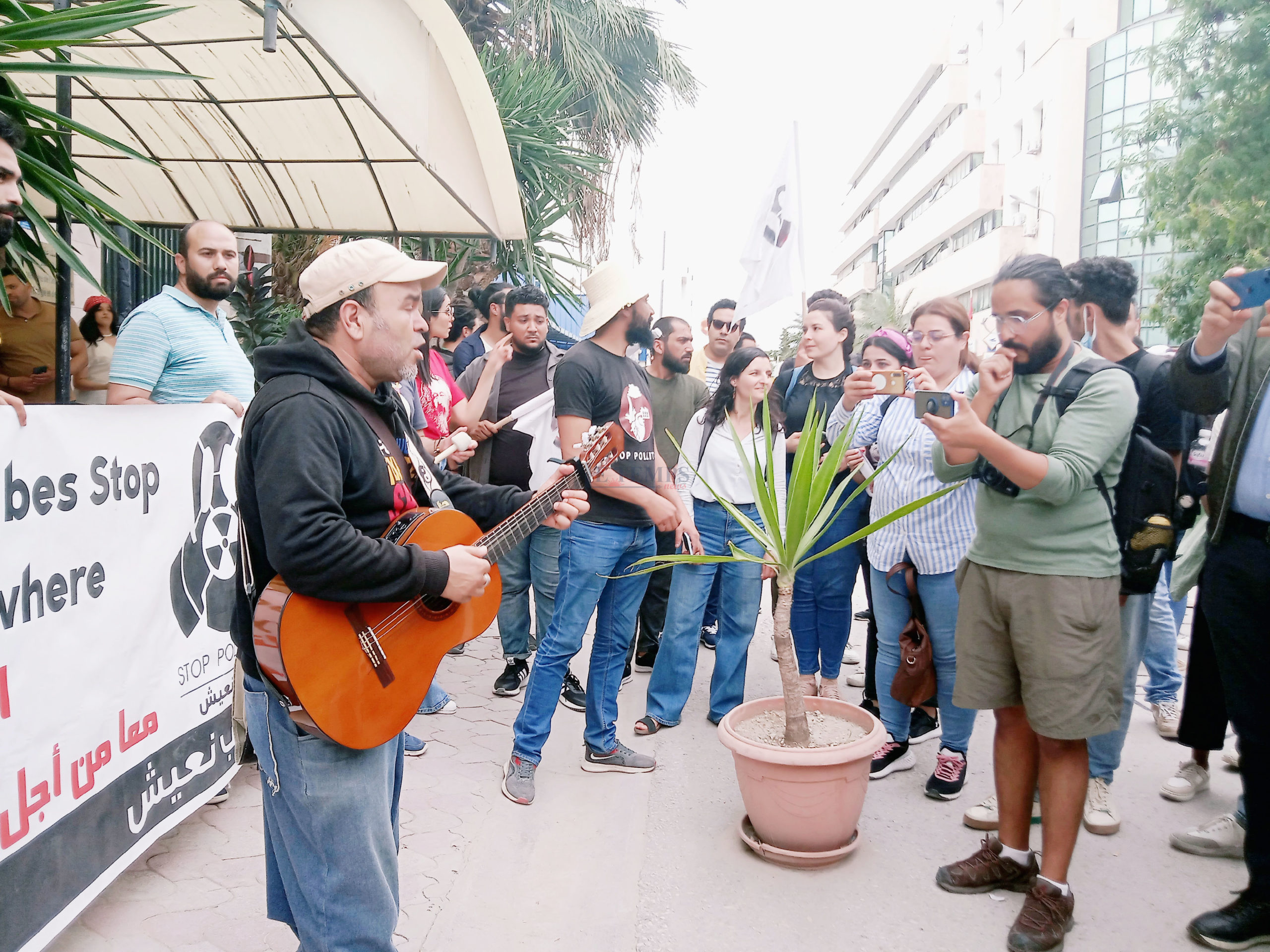 Différents activistes à la société civile étaient présents sur les lieux pour exprimer leur adhésion à cette cause et leur soutien à toutes les revendications soulevées par la campagne « Stop Pollution » et les différents groupes environnementaux. L’artiste engagé Yasser Jradi a également participé à cet événement et a présenté un spectacle musical pour exprimer son appui aux luttes menées par les jeunes activistes et militants.tes écologistes .