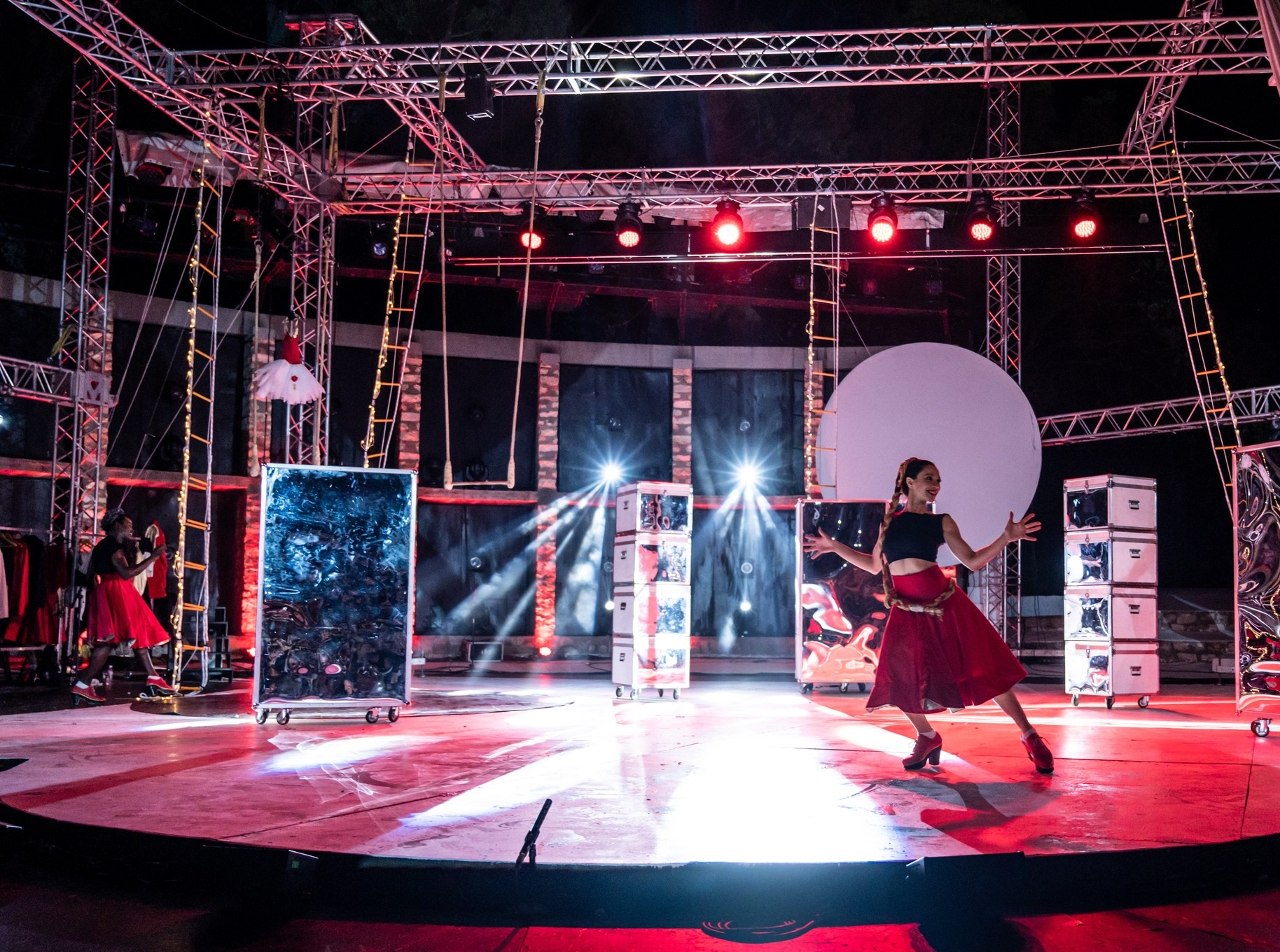 Alliage parfait, il agrandit les territoires de l’art vivant. Le cirque n’est pas obligé de singer la danse pour se marier avec la musique ; et la musique, au lieu d’être une simple bande son, est un élément organique de l’œuvre. Cette création qui a vu le jour en 2021 rend hommage aux films des années 1920 à travers une projection d’un film en noir et blanc conçu spécialement pour la pièce, à arrière-plan de la scène. Avec un clin d’œil à l’histoire d’ « Antar et Abla ». Nawel Skandrani a pris recours à de multiples références, dont le ballet « Le lac des Cygnes », la chanteuse Maria Callas et au chanteur et pianiste Ray Charles.
