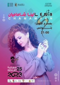 La chanteuse syrienne Lina Chamamyan animera notamment un spectacle musical le 25 juillet au Théâtre de l’Opéra de la Cité de la Culture de Tunis à partir de 21h.
