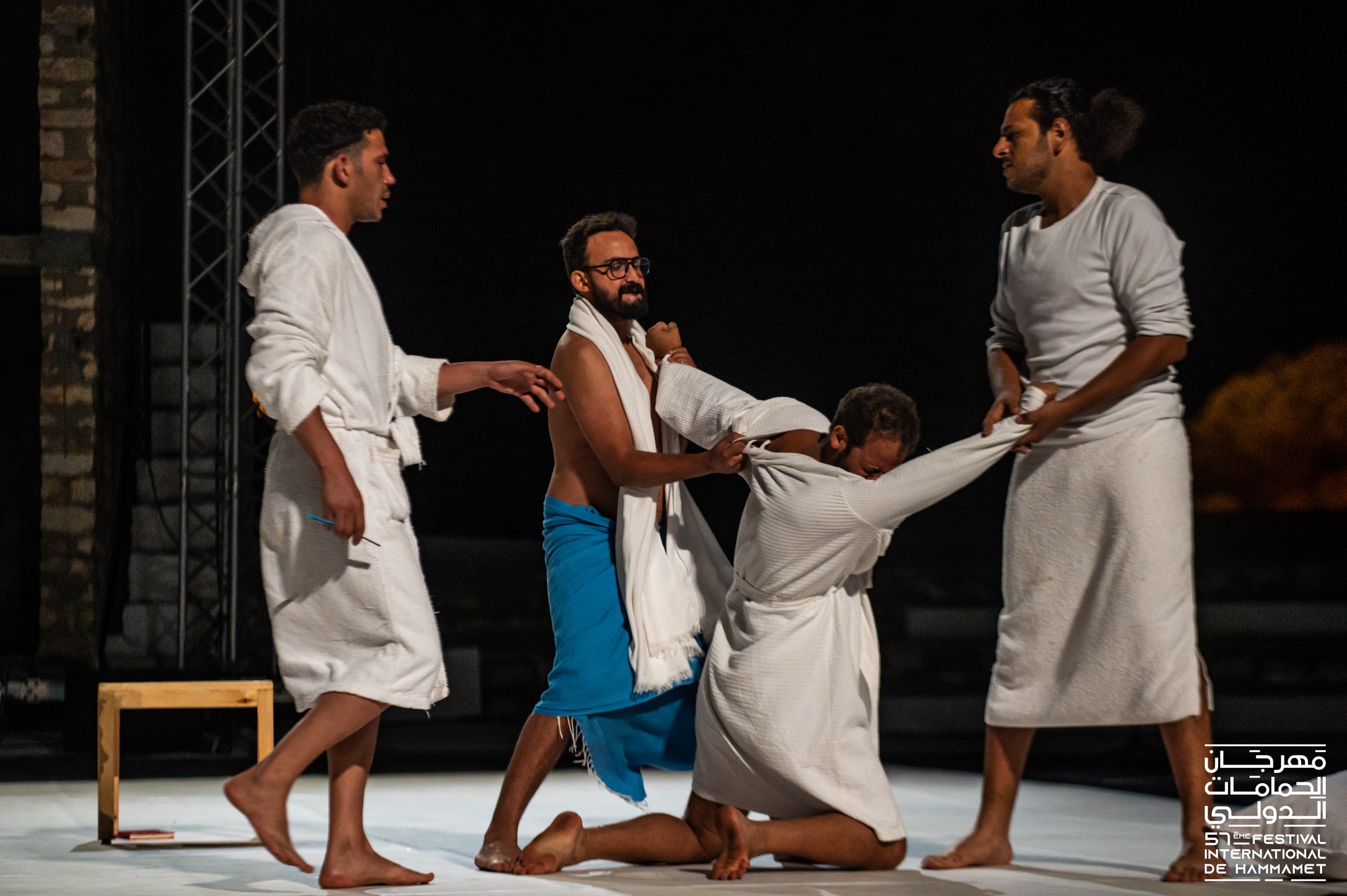 La 57ème édition du Festival International de Hammamet a accueilli pour sa 25ème soirée, le mardi 08 août 2023, « Kaligula 2 », pièce de théâtre signée par le réalisateur et metteur en scène tunisien Fadhel Jaziri et produite par le Théâtre National Tunisien et le Nouveau Film. « Kaligula 2 », la 4ème pièce de théâtre programmée dans cette édition, est distribuée par les acteurs Mohamed Kouka, Talel Ayoub, Nouha Nafati, Mohamed Barkati, Slim Dhib, Ichraq Matar, Imene Manai et Rhaiem Bahrini, qui ont gardé leurs petits noms pour la pièce.