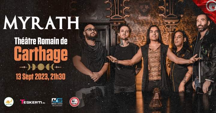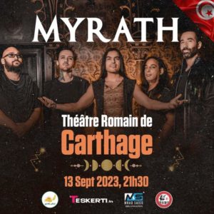 Partager Facebook Twitter LinkedIn Pinterest Email Le groupe tunisien de metal « Myrath » a officiellement annoncé hier jeudi 17 août, qu’il va présenter un spectacle musical le 13 septembre prochain au Théâtre romain de Carthage à partir de 21h30. Carthage concert musique
