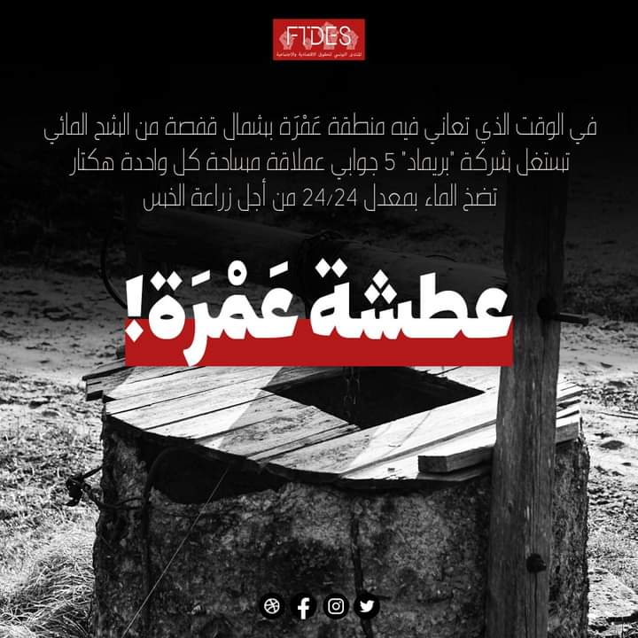 Après avoir annoncé récemment son intention de publier séparément des articles de son rapport semestriel de l’année 2023, dans le but de mettre en lumière davantage les différentes problématiques qu’il a abordées, le département de la justice environnementale du FTDES a rendu public, ce lundi 21 août, un troisième article intitulé : « Le Soif à Aamra » et élaboré par Rabeh Ben Othmane.