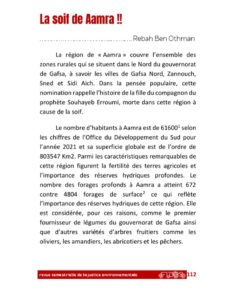 « La région de Aamra couvre l’ensemble des zones rurales situées à Gafsa et les villes suivantes : Zannouch, Sned, Sidi Aich et Gafsa Nord … Le nombre de forages profonds à Aamra a atteint 672 contre 4804 forages de surface … »
