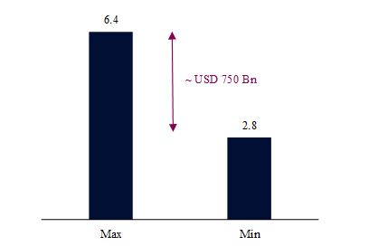 Toutefois, à l’avenir, alors que la réouverture économique est derrière nous, le scénario est beaucoup plus incertain. L’écart important entre les prévisions maximales et minimales (max-min) pour la croissance de la Chine en 2024 reflète bien cette incertitude : le prévisionniste le plus optimiste s’attend à une croissance de 6,4 %, tandis que le prévisionniste le plus pessimiste ne prévoit qu’une croissance de 2,8 %. La différence est essentielle, non seulement pour la Chine, mais aussi pour l’ensemble de l’économie mondiale. Si les prévisions les plus optimistes s’avèrent exactes, la Chine ajoutera environ 1 300 milliards de dollars à l’économie mondiale. En revanche, si le scénario baissier se concrétise, la Chine n’ajoutera que 542 milliards d’USD à l’économie mondiale. L’écart entre les deux résultats, qui s’élève à 750 milliards d’USD, est ce qui sépare le PIB d’un pays relativement grand comme l’Espagne de celui d’un pays plus petit comme l’Autriche.