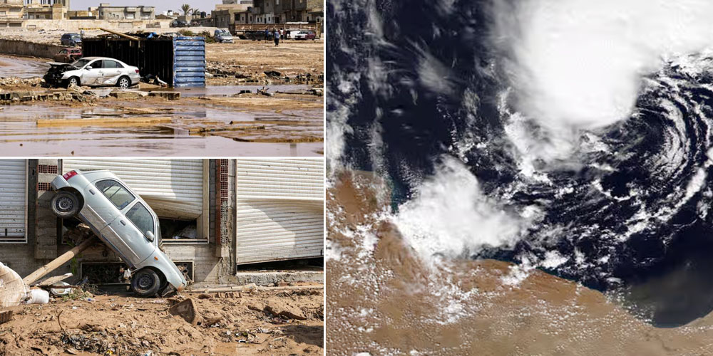 Selon des informations relayées par des agences de presse internationales, des membres du Croissant-Rouge et de l’armée nationale libyenne qui portaient secours aux habitants ont été portés disparus. Le Conseil présidentiel libyen, au pouvoir à Tripoli, en rivalité avec les autorités de l’est, a décrété l’état de catastrophe et lancé un appel à l’aide internationale. Les experts en climat jugent que les précipitations ont atteint un niveau « extrême en termes de quantités d’eau tombée ». Un deuil de trois jours a été décrété par le Parlement de la Cyrénaïque, dans l’est libyen.